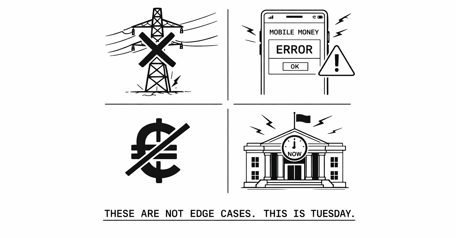 The power went out at 11:43 on a Tuesday morning. Amara had been on a demo call with a prospect in Accra, a logistics company, their biggest lead that month, when the screen went black. No UPS. No generator. The modem died with the lights.